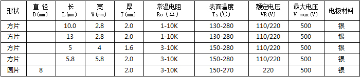 ◆溫控器用,熱保護器用PTC發熱元件主要技術參數