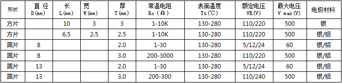◆驅(qū)蚊器用PTC發(fā)熱元件主要技術(shù)參數(shù)